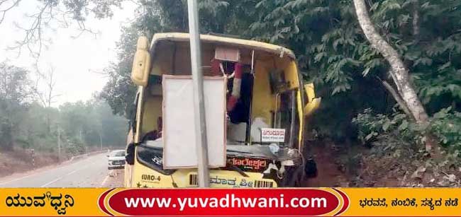 ಬೆಂಗಳೂರಿನಿಂದ ಸಿಗಂದೂರಿಗೆ ತೆರಳುತ್ತಿದ್ದಾಗ ಘಟನೆ ಸಂಭವಿಸಿದೆ. ಬಸ್ಸಿನಲ್ಲಿದ್ದ 20 ಜನ ಪ್ರಯಾಣಿಕರು ಇದ್ದರು. ಅದೃಷ್ಟವಶಾತ್ ಪ್ರಯಾಣಿಕರಿಗೆ ಯಾವುದೇ ಹಾನಿಯಾಗಿಲ್ಲ. ಕಾರ್ಗಲ್ ಪೊಲೀಸ್ ಠಾಣಾ ವ್ಯಾಪ್ತಿಯಲ್ಲಿ ನಡೆದ ಘಟನೆ ಇದಾಗಿದೆ.